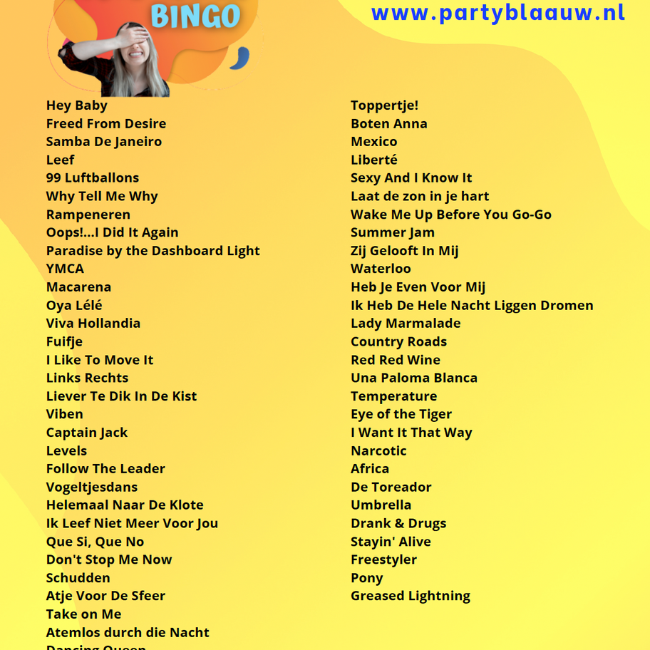 Party Blaauw Foute Muziekbingo
